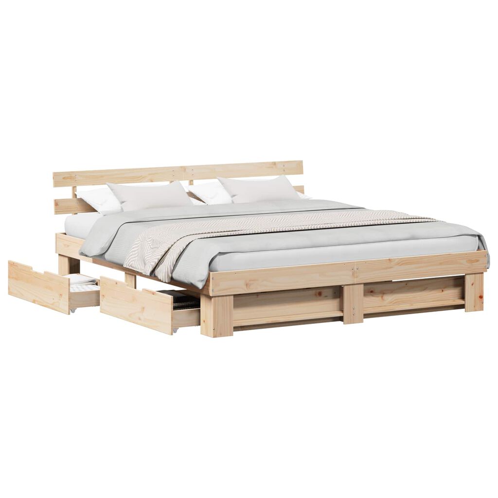 vidaXL Bed Frame with Headboard Brown 200 x 200 cm Solid Pine Wood