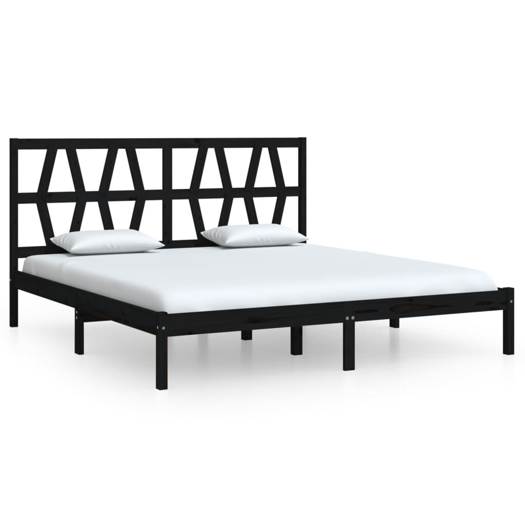 vidaXL Bed Frame without Mattress Black Solid Wood Super King