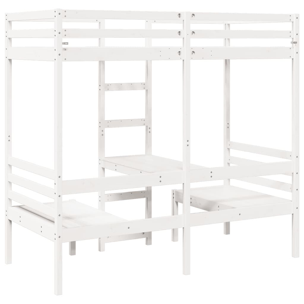 This versatile loft bed integrates a single bed with a desk and chairs, providing a cosy sleeping space, and a spacious work area. It is an ideal choice for homes with limited space.