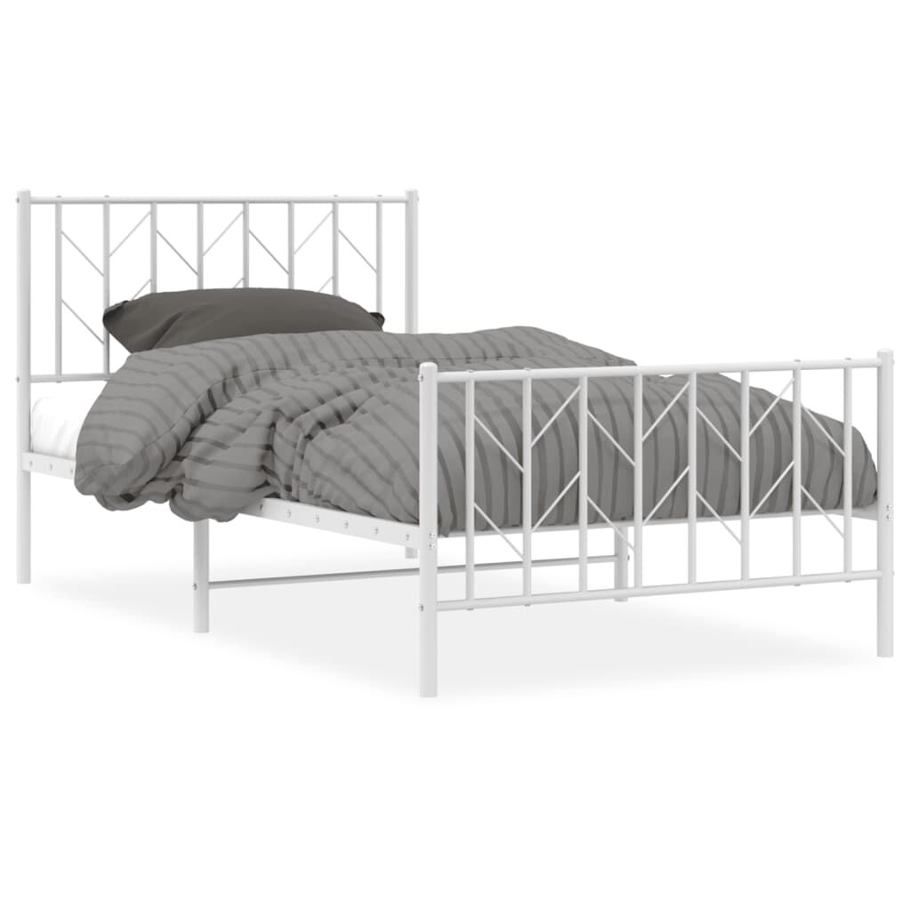 vidaXL Metal Bed Frame without Mattress with Footboard White 100x200cm