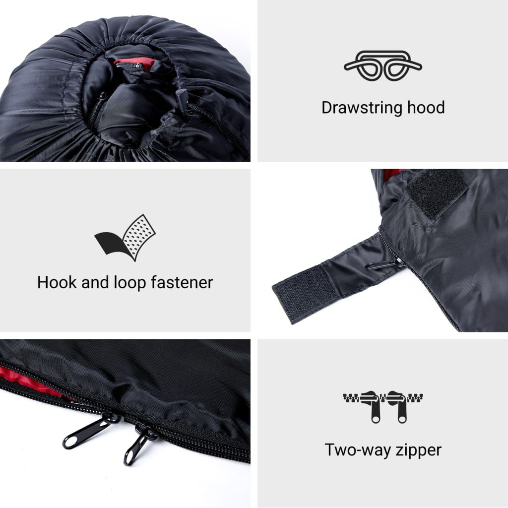 • Comfortable and warm: The sleeping bag is filled with polypropylene, and you can pull the drawstring cord to tighten the hood around your head, ensuring a warm and comfortable sleep.
